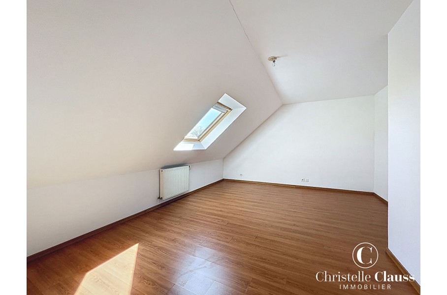 A l'étage vous trouverez deux grandes chambres d'environs 15m² et 17 m² ainsi qu'une salle de bains avec baignoire et wc.