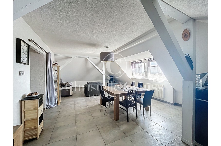 En EXCLUSIVITE chez Christelle Clauss Immobilier, cet appartement quatre pièces d'une surface de 93,67m² habitable au dernier étage, sans ascenseur, vous offre un cadre de vie paisible à KINTZHEIM, dans une petite copropriété.