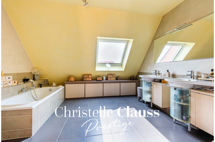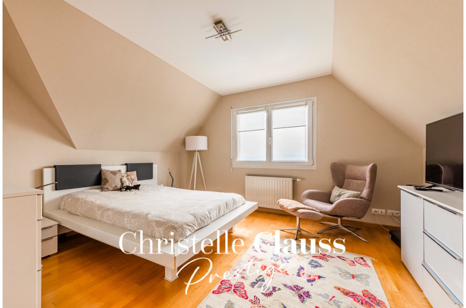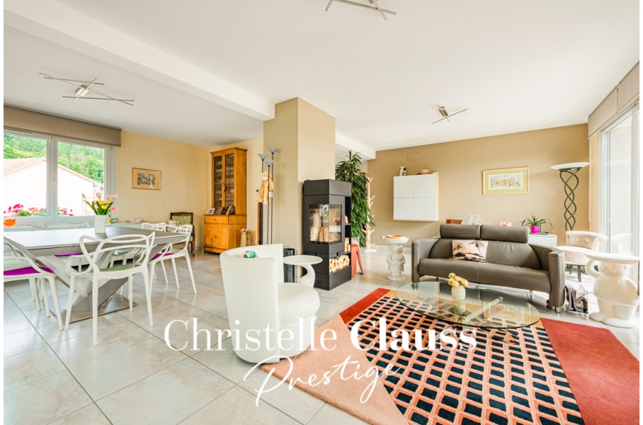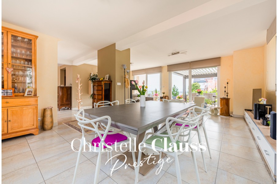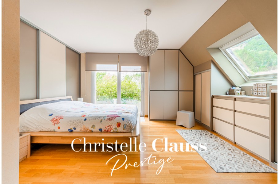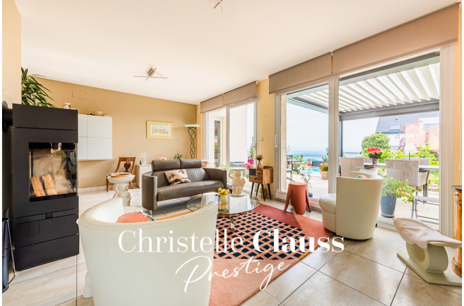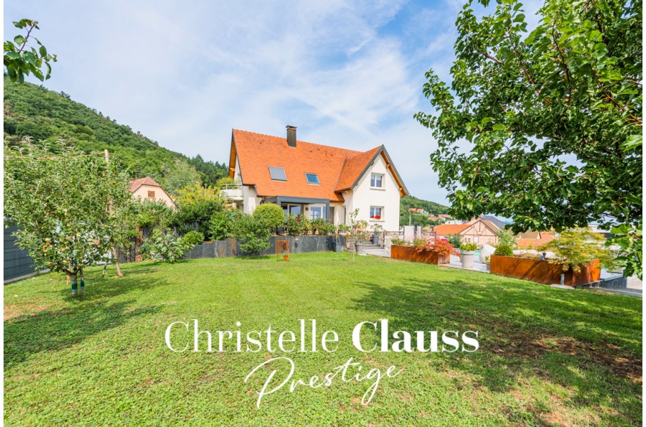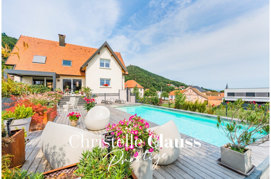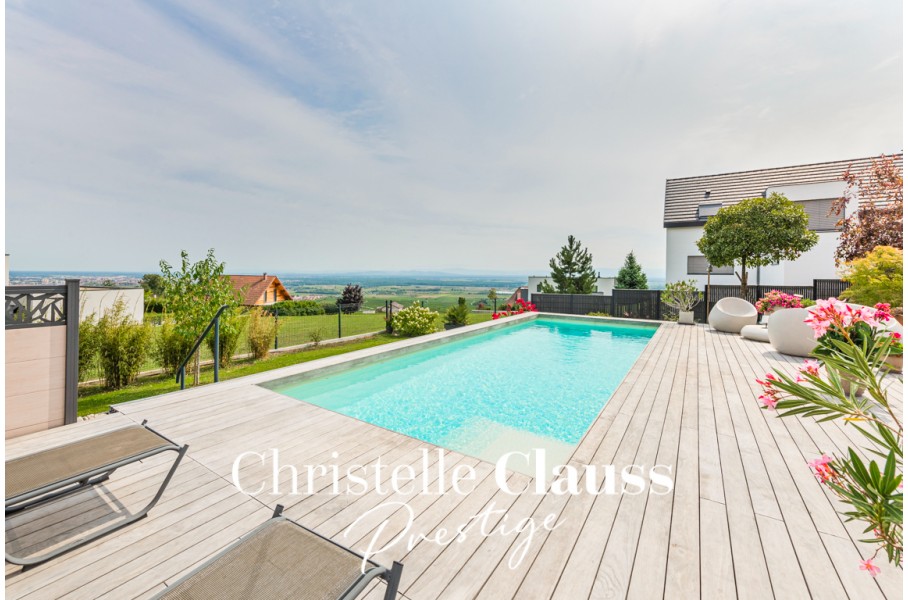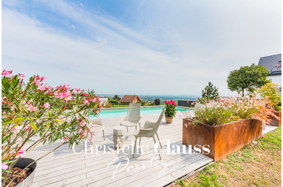 Cette superbe villa construite en 2007 est implantée sur un terrain arboré de 10 ares24, offrant une vue imprenable sur la plaine d'Alsace et le vignoble.