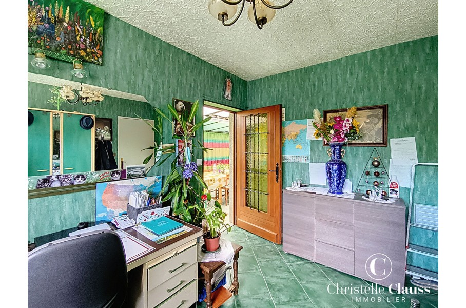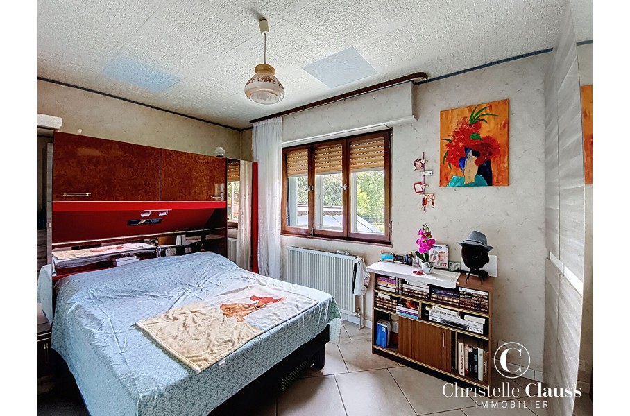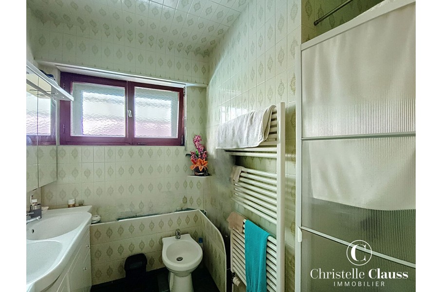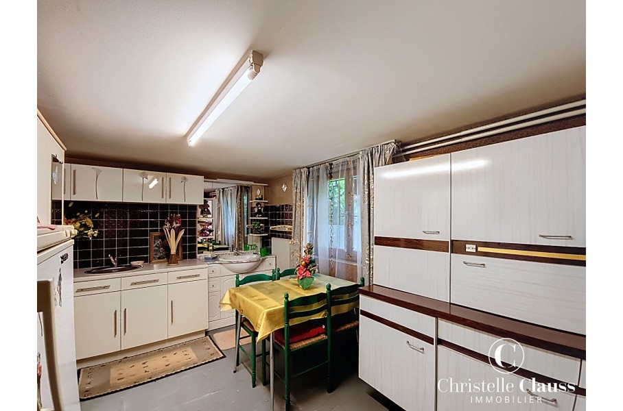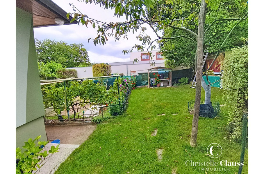 Situation : Nichée au calme à Hochstatt, dans une rue très calme cette maison de plain-pied de 130 m² habitables, avec sous-sol entièrement aménagé, est proposée en nue-propriété (critère essentiel).