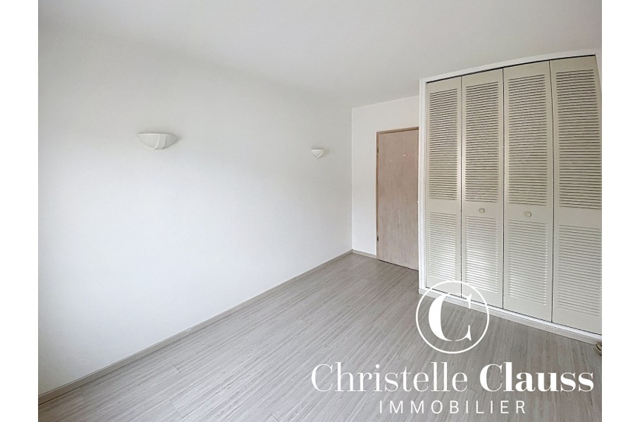La salle de bains est aménagée avec baignoire et douche. Les toilettes sont séparées. L'espace nuit comprend deux chambres avec placards intégrés, dont l'une dispose également d'un balcon.