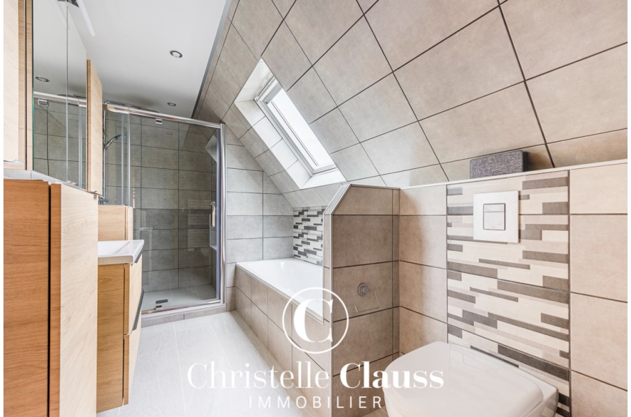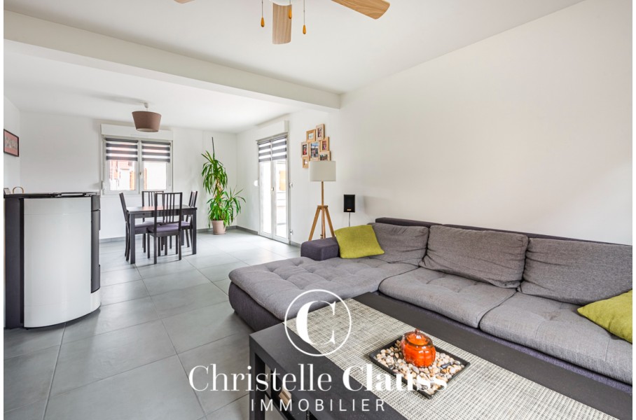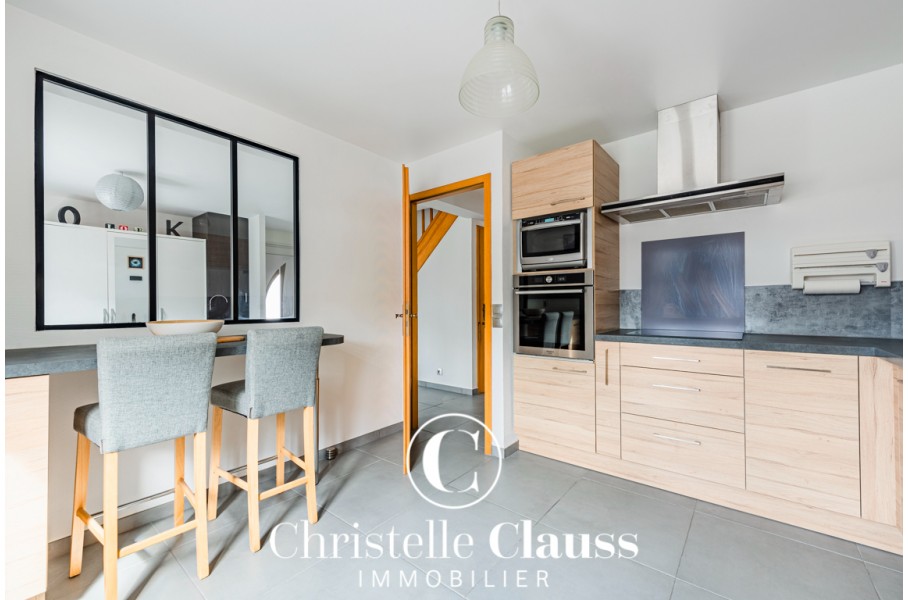 - 4/5 pièces : Cette maison de 115m2 au sol et 105m2 habitables sur un terrain de 482m2 offre une entrée spacieuse/espace bureau, une cuisine équipée, un salon/salle à manger de 30m2 et un wc au rez de chaussée.