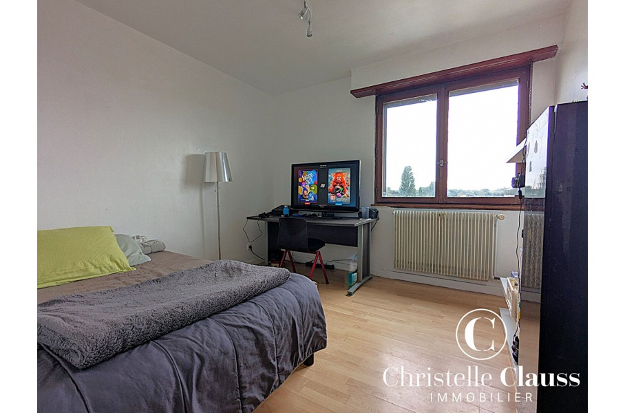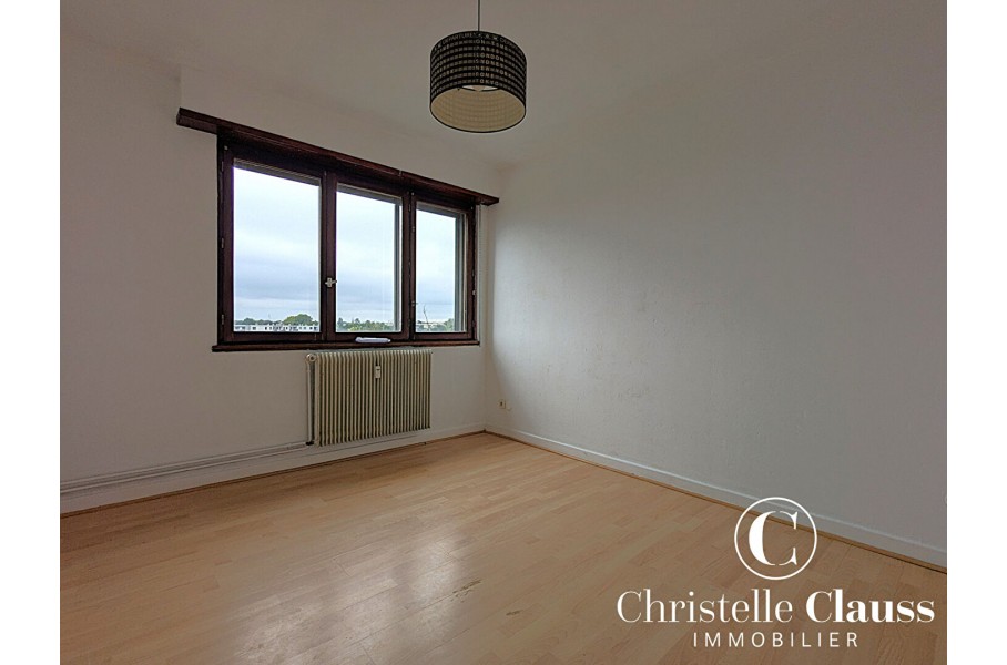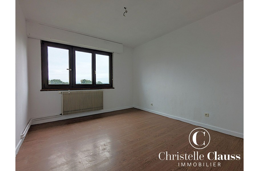 A vendre : Appartement 5 pièces de 99 m², situé au 4ème et dernier étage (sans ascenseur) d'une copropriété rue des Cigognes, au Sud d'Ostwald.