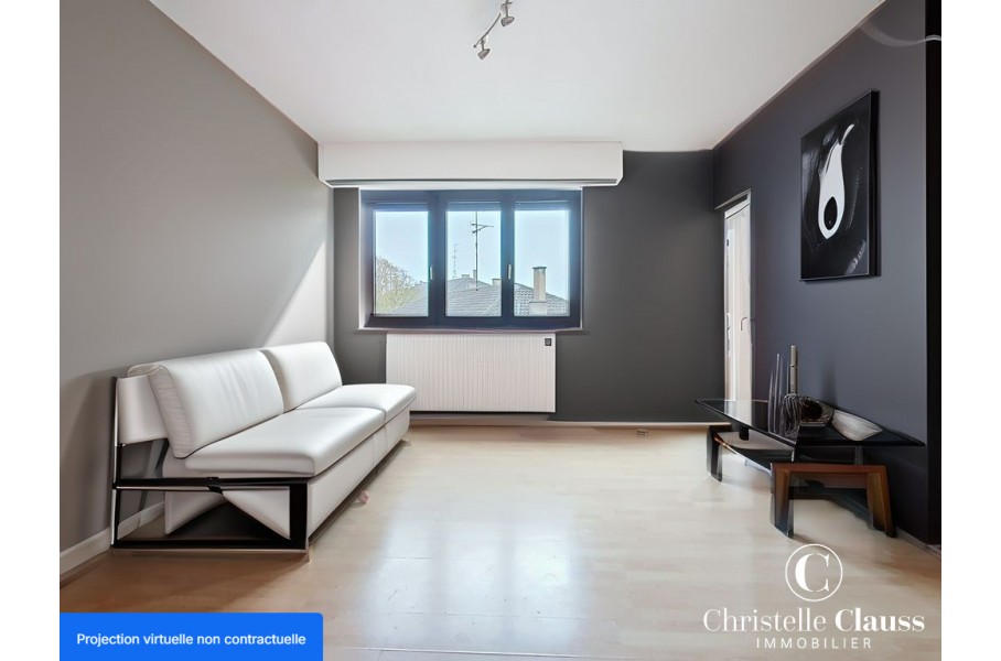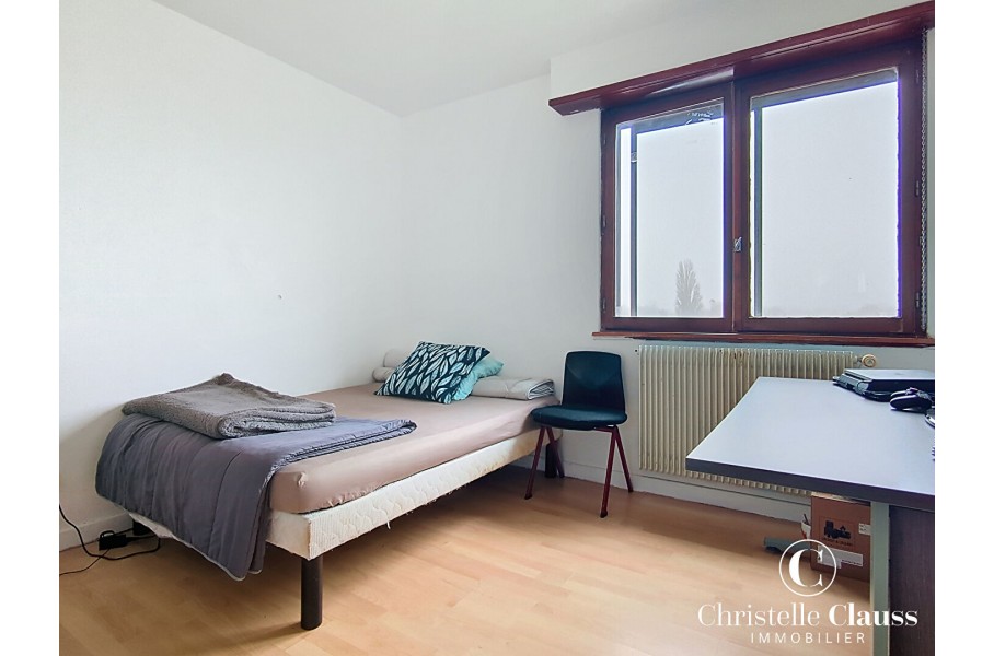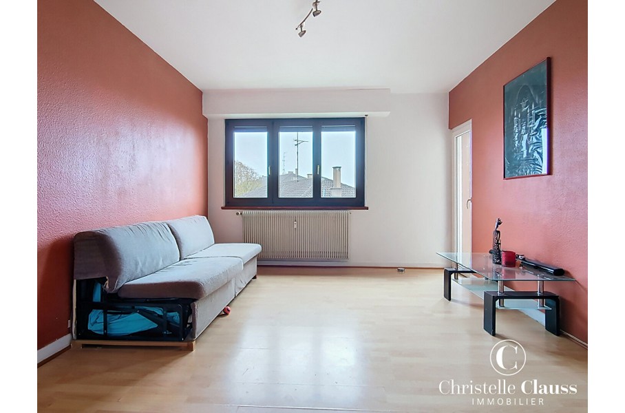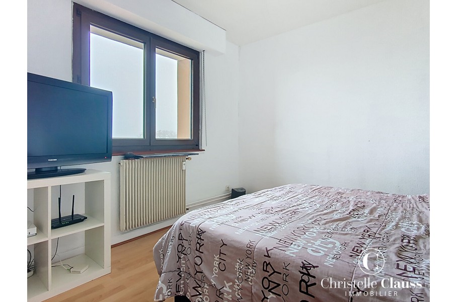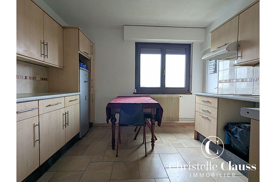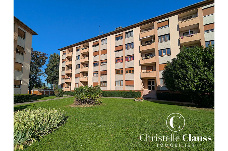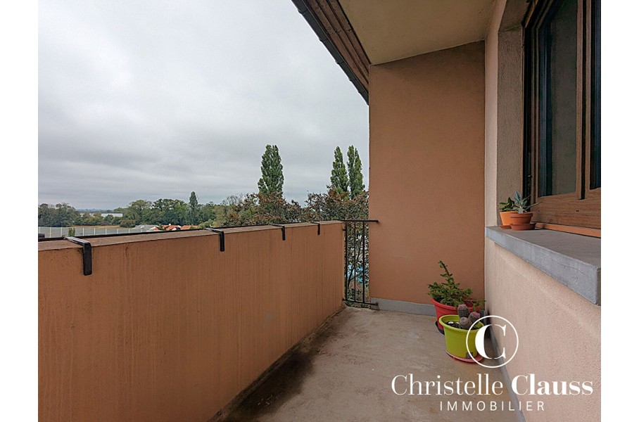 Appartement 5 pièces de 99 m², situé au 4ème et dernier étage (sans ascenseur) d'une copropriété, au Sud d'Ostwald.