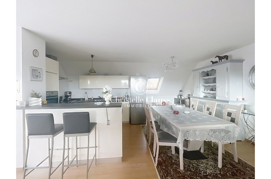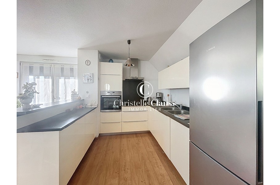 A 5 minutes à pied du centre-ville et à proximité immédiate des commerces, au calme, appartement F3/4 pièces d'une surface de 82 m² au sol et 65 m² hab situé au dernier étage d'une petite immeuble de 5 logements parfaitement entretenue bâtie en 2015.