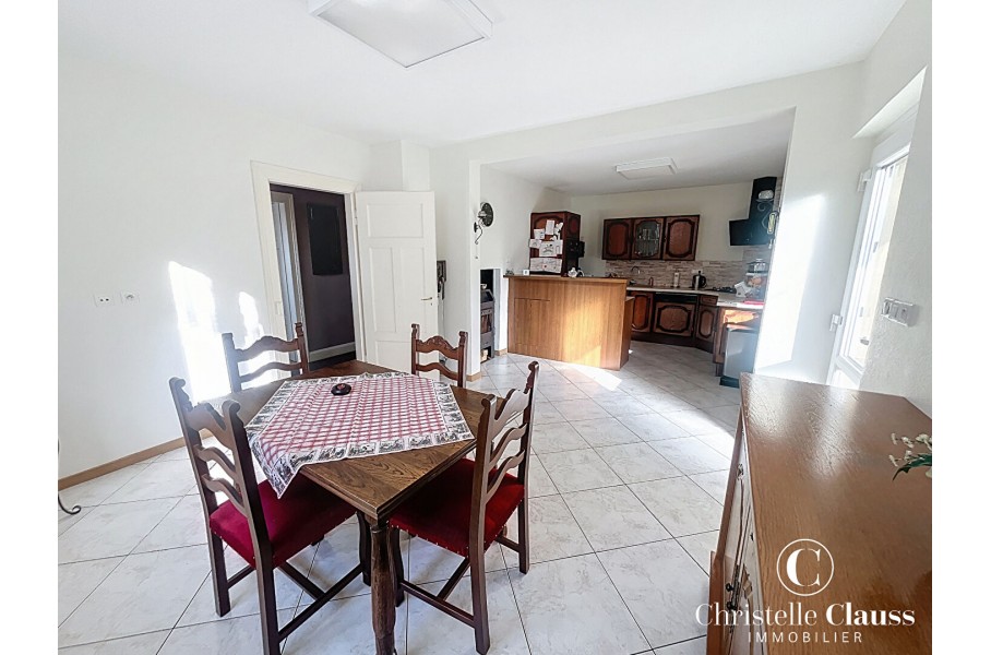 D'une maison d'habitation d'une surface environ de 110 m² hab, au rdc une grande cuisine américaine indépendante, un salon, une salle a manger et à l'étage 3 chambres à coucher et une belle salle d'eau avec wc + 1 grand sous sol