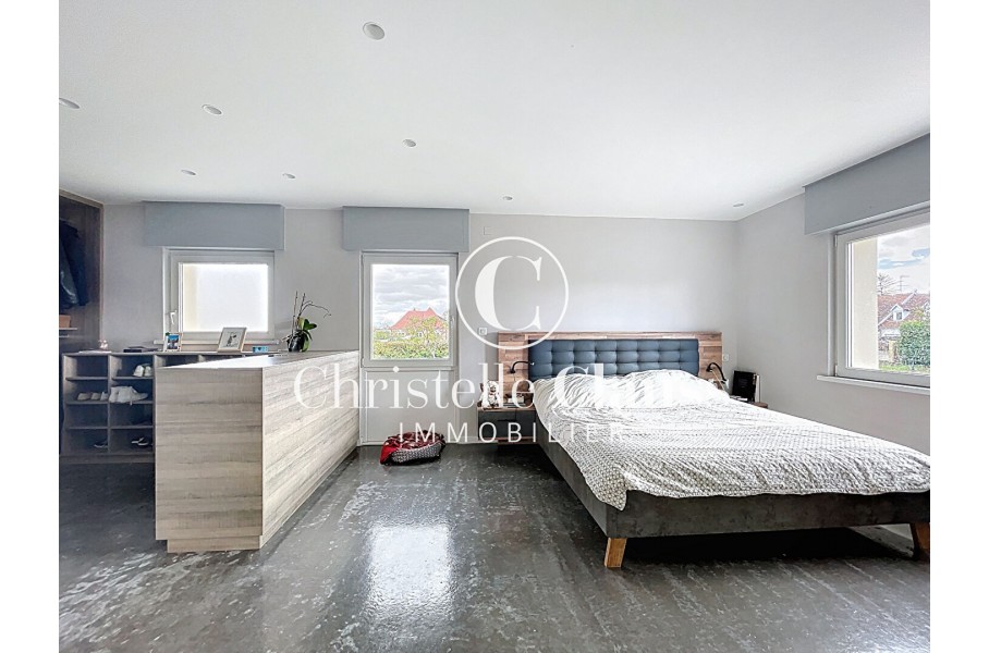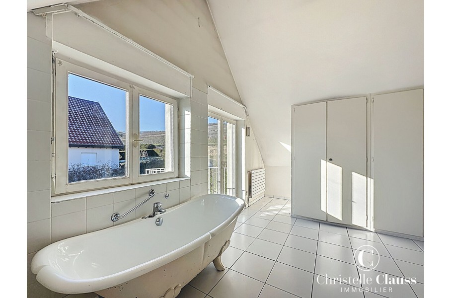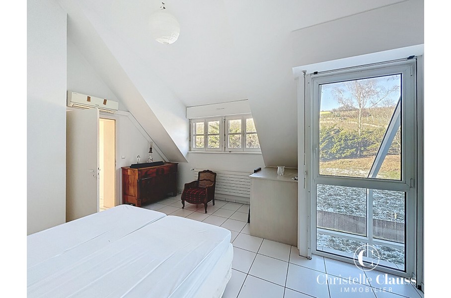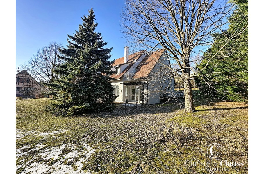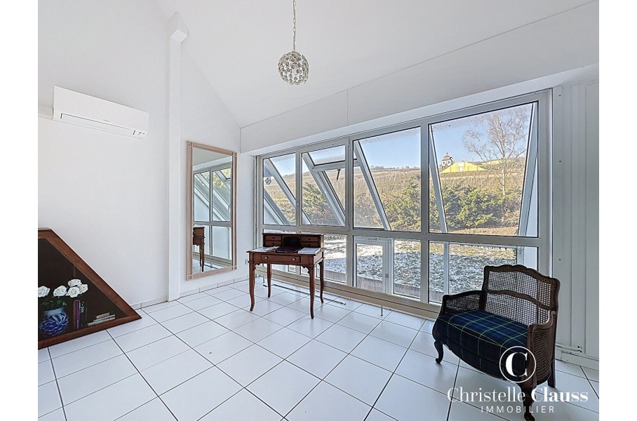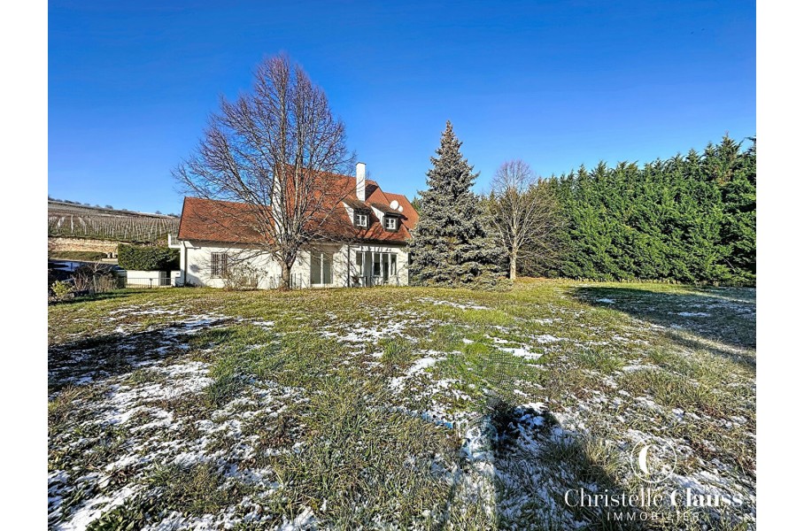 A Marlenheim dans un quartier privilégié en impasse et au bord des vignes se trouve cette maison d'architecte qui séduit dès le premier regard par sa vue imprenable et son écrin de verdure