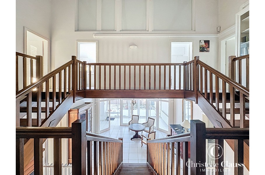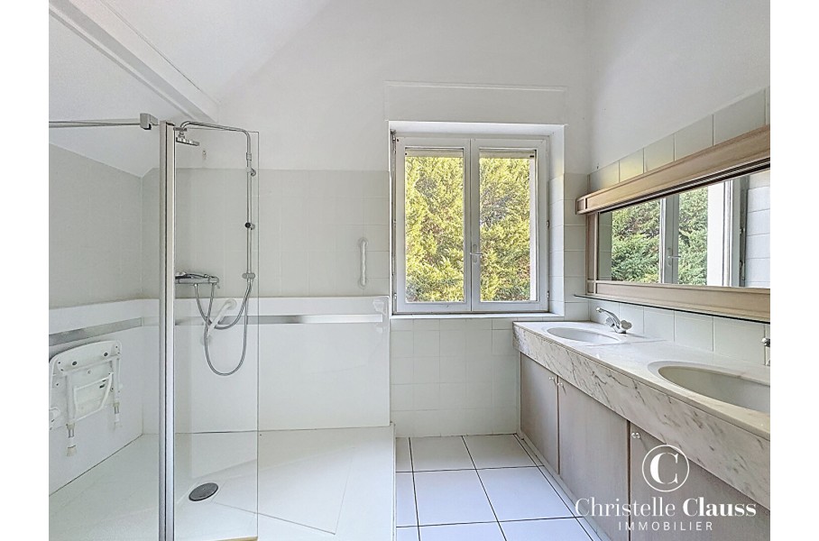 A l'étage la suite parentale avec sa salle de bains privative de plus de 28 m²est un véritable havre de paix , quatre autres chambres et deux salles de bains supplémentaires permettent à toute la famille de profiter de son espace intimité et confort au total cinq chambres à l'étage offrant des volumes rares