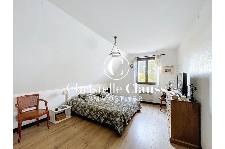 Elle se compose d'un grand séjour lumineux ouvrant sur une terrasse et un jardin arboré avec sa petite cabane en bois, parfait pour profiter des beaux jours.