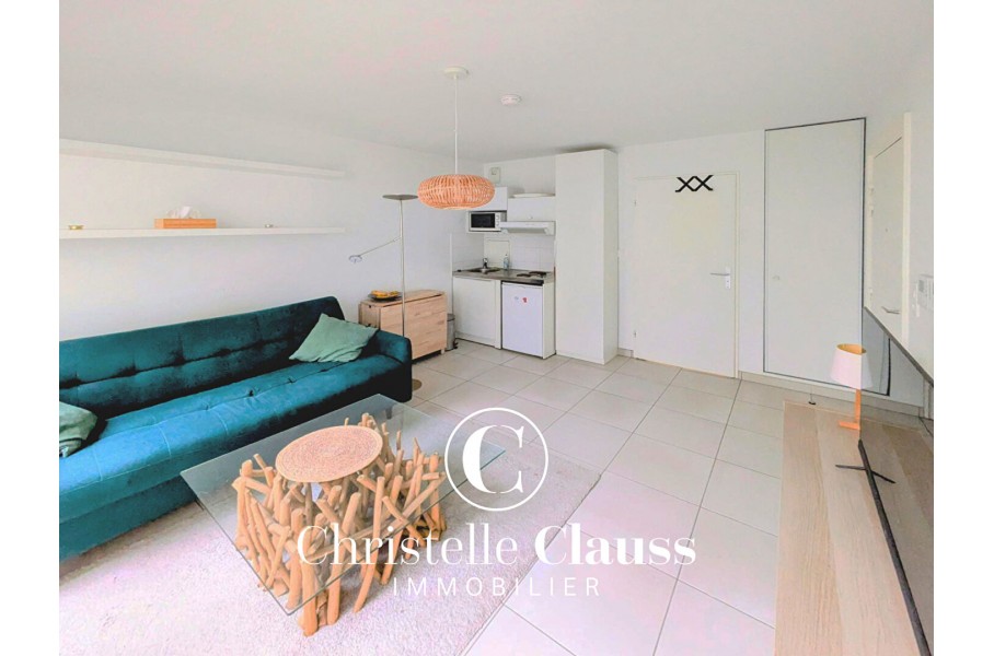 L'appartement se compose d'un séjour/chambre avec kitchenette, d'une salle d'eau avec WC et d'une belle terrasse de 9m² sans vis-à-vis.