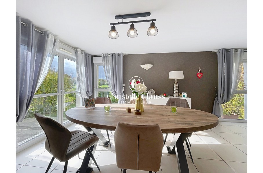 A proximité immédiate de Barr et à seulement quelques minutes d'Obernai, dans le village de Gertwiller, venez découvrir ce duplex de 87 m² habitables (94 m² au sol), construit en 2008 par le Carré de l'Habitat et très bien entretenu.