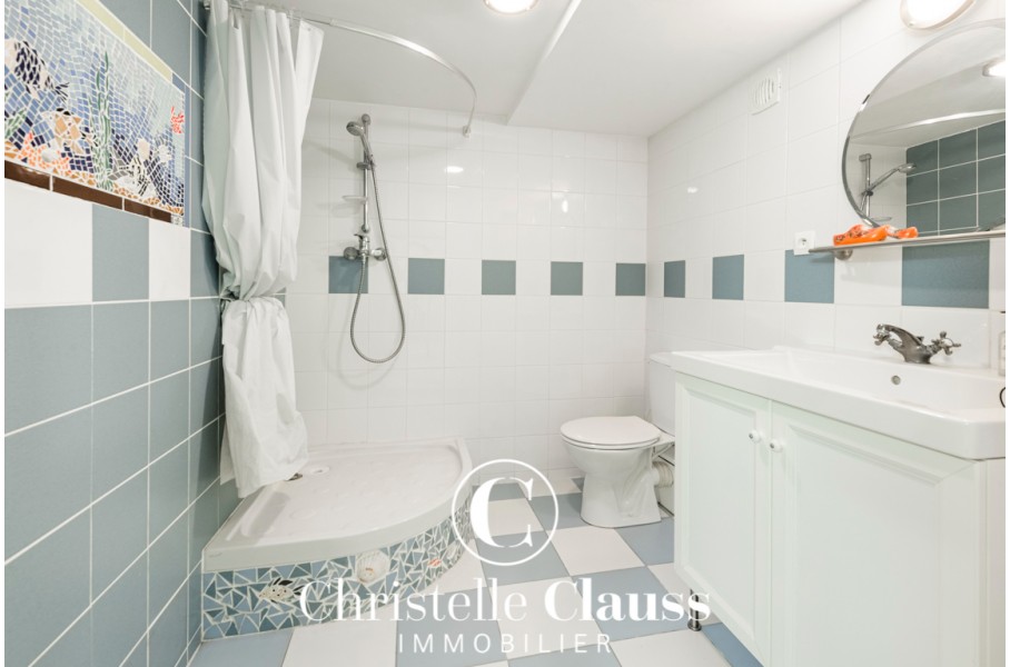 Sous sol aménagé avec une chambre de 16m2 et une salle d'eau avec wc, une pièce cuisine buanderie, un grand double garage de 50m2 en enfilade avec atelier.