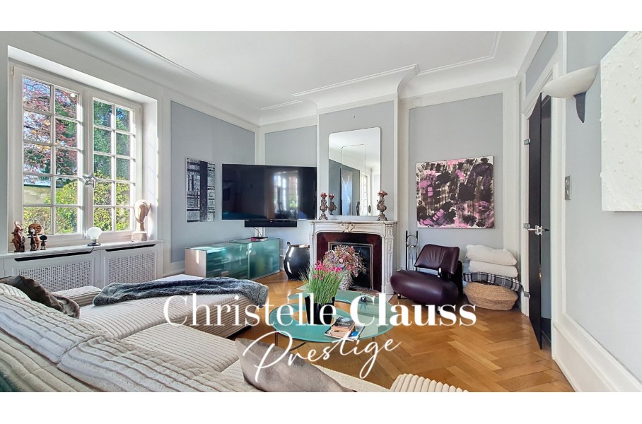 Les salons en enfilade, baignés de lumière et ouverts sur les terrasses, composent un tableau vivant entre nature et élégance. La majestueuse cage d'escalier en chêne, la cheminée de marbre et les hauteurs sous plafond soulignent le prestige exclusif de cette demeure.