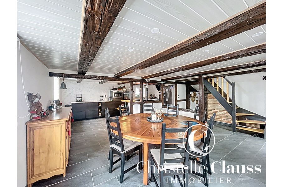 Découvrez cette magnifique maison alsacienne de 173,7 m² habitables, entièrement rénovée et offrant un équilibre parfait entre le charme de l'ancien et le confort moderne. Elle dispose également d'une grange accolée d'environ 170 m², idéale pour du stockage, un atelier ou un futur aménagement selon vos projets.