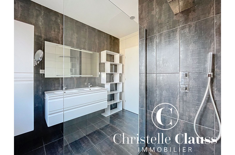 Dès le rez-de-chaussée, vous profitez d'une véritable vie de plain-pied grâce à son agencement. Un vaste séjour lumineux de 45,60 m², ouvert partiellement sur une cuisine équipée, mène à la véranda puis à une grande terrasse idéale pour les repas en extérieur. Deux chambres se trouvent sur ce niveau, dont l'une avec accès direct à la terrasse, vous y trouverez également une salle d'eau avec douche et WC.