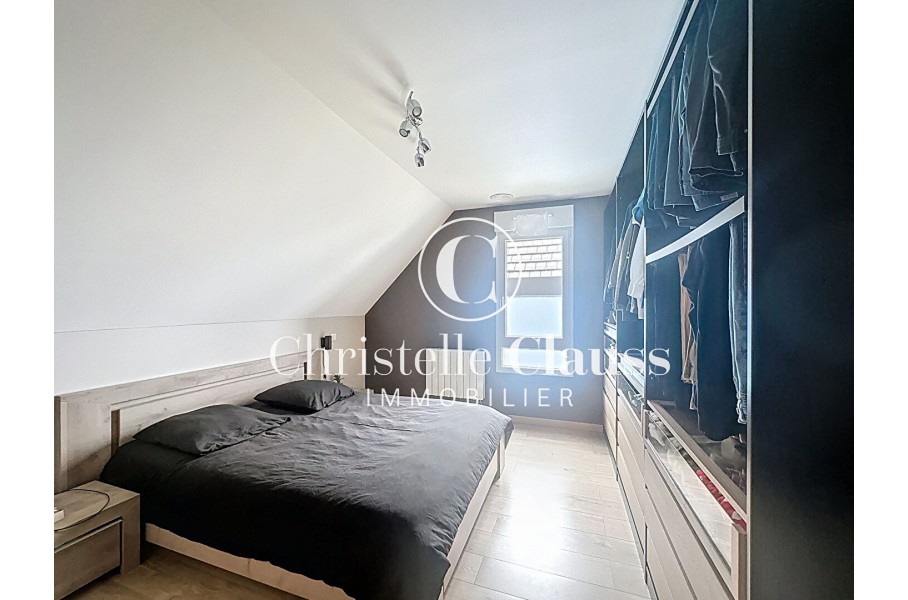 La maison se compose d'une entrée avec placards, un wc séparé, une lumineuse pièce de vie de 41 m² comprenant un espace salon, un espace repas, une cuisine équipée ouverte avec accès direct au garage et sur l'extérieur.