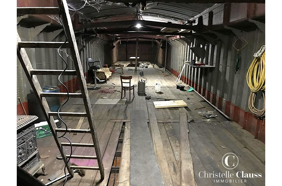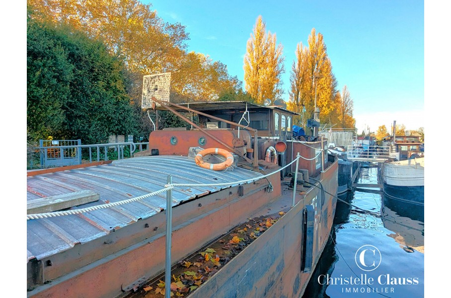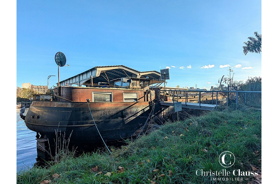 Péniche construite en 1934, située à Strasbourg dans le quartier du Conseil des XV, rue du Général Conrad, à rénover pour la transformer en habitation.