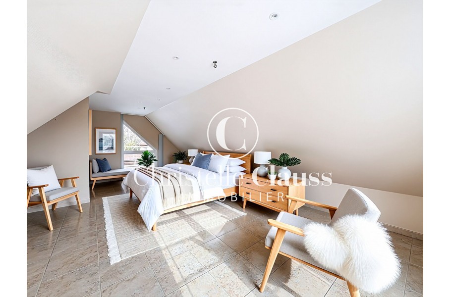 A l'étage, quatre chambres spacieuses prolongent cette impression de bien-être, accompagnées d'une salle de bains et de deux terrasses supplémentaires, véritables invitations à profiter du calme.