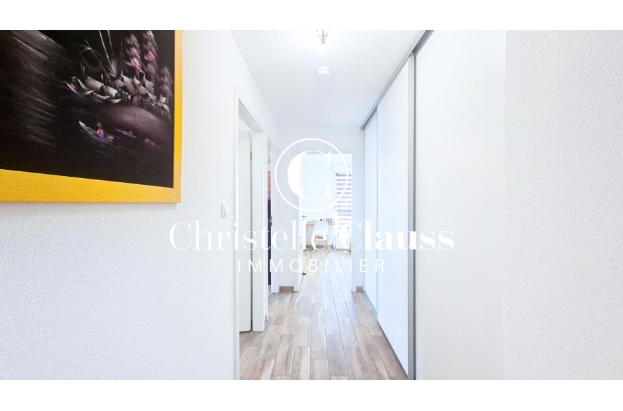 Dès l'entrée, un grand hall accueillant mène à un couloir aménagé avec armoire dressing XL intégrée, offrant un espace de rangement généreux et fonctionnel.