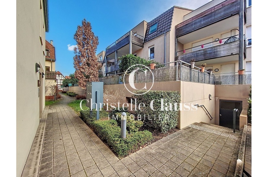 BRUMATH en exclusivité chez Christelle Clauss Immobilier, appartement en rez-de-jardin construit en 2014 d'une superficie de 45m² situé à moins de 5 min à pied de la gare.