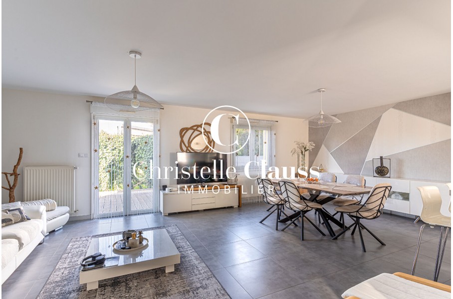 Vous disposerez d'une entrée, d'un salon/séjour de 34m² donnant vers l'extérieur, dans le prolongement une cuisine équipée, un coin cellier sous l'escalier et un WC séparé avec placard. Vous disposerez également d'un accès direct au garage (capacité une voiture).