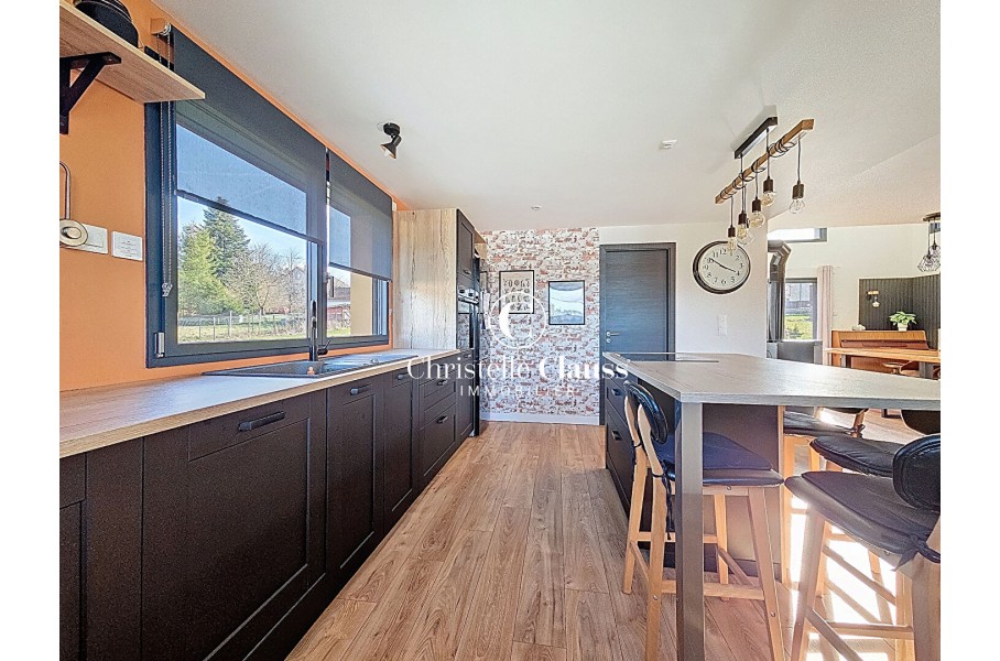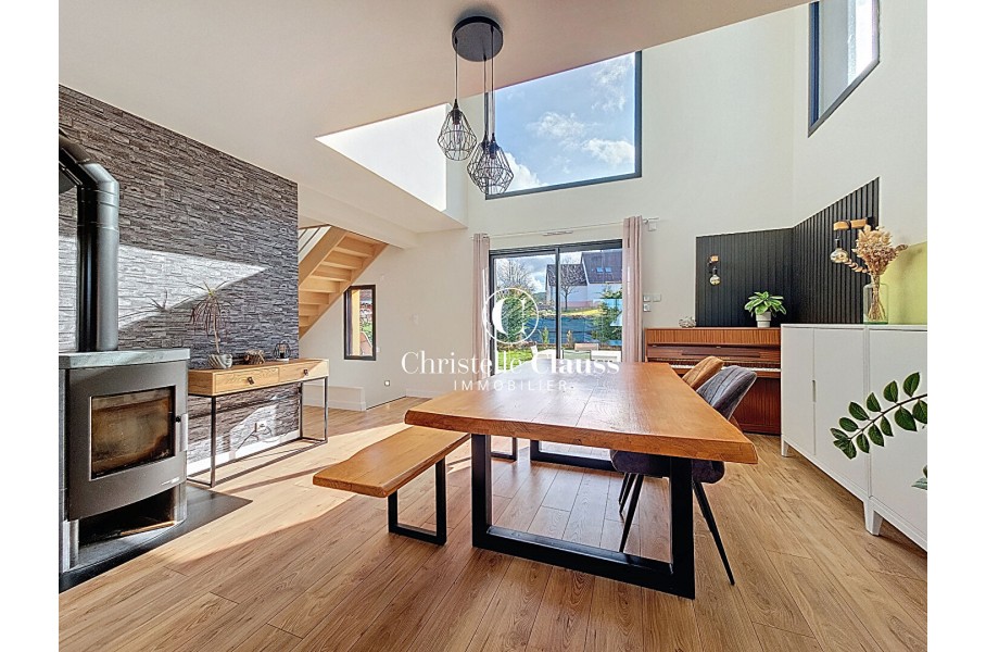 Erigée en 2021 sur un terrain de plus de 11 ares, la maison d'une surface de 152m2 allie élégance et performance énergétique élevée.