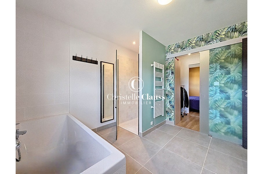 Au premier étage se trouvent 3 chambres dont une parentale avec dressing et accès à la salle de bain avec douche et baignoire.