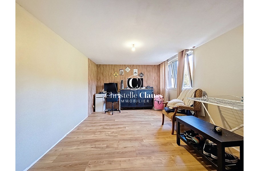 Des l'entrée, vous y trouverez de nombreux rangements, une chambre de 20m2 ainsi qu'un grand garage pouvant accueillir une voiture et de nombreuses affaires.