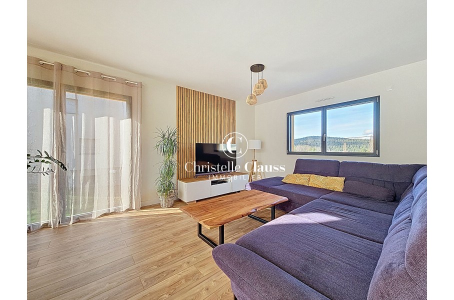 Erigée en 2021 sur un terrain de plus de 11 ares, la maison d'une surface de 152m2 allie élégance et performance énergétique élevée.