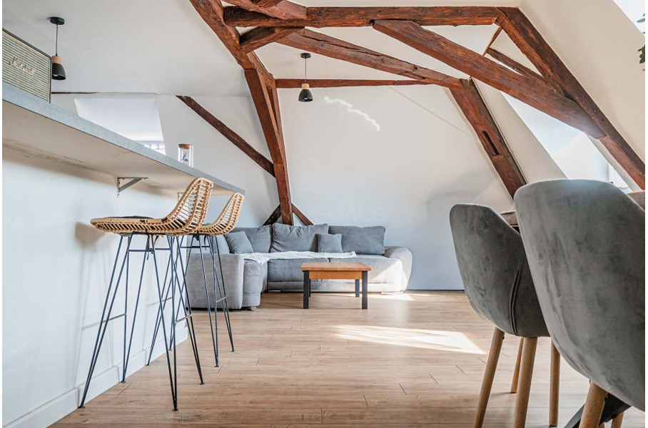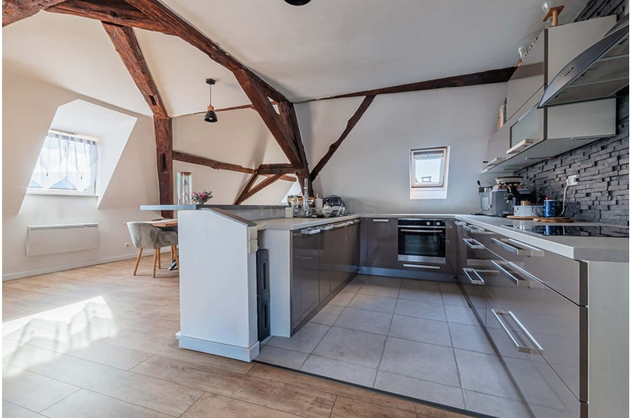 Très beau duplex d'une superficie de 117,81 m² au sol et 84,68 m² habitables, situé au 2ème et dernier étage d'un immeuble de seulement 5 lots, entièrement rénové, en plein coeur de Wasselonne, à proximité immédiate de toutes les commodités et des transports.