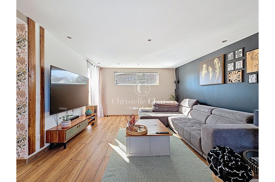 Aussi une magnifique cuisine toute équipée ouverte sur le séjour avec également un espace buanderie/sellier menant au garage. Une extension a été réalisée créant un beau salon très cosy.