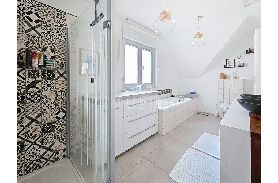 - à l'étage, 3 chambres dont un grande chambre parentale avec son dressing ! Toujours au même étage, une belle salle de bain avec douche et baignoire et une double vasque, wc. Possibilité de créer une 4e chambre si besoin au dessus de l'extension.