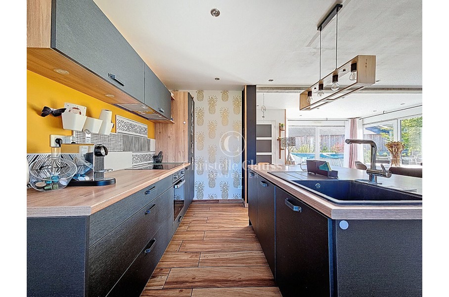 Aussi une magnifique cuisine toute équipée ouverte sur le séjour avec également un espace buanderie/cellier menant au garage. Une extension a été réalisée créant un beau salon très cosy.