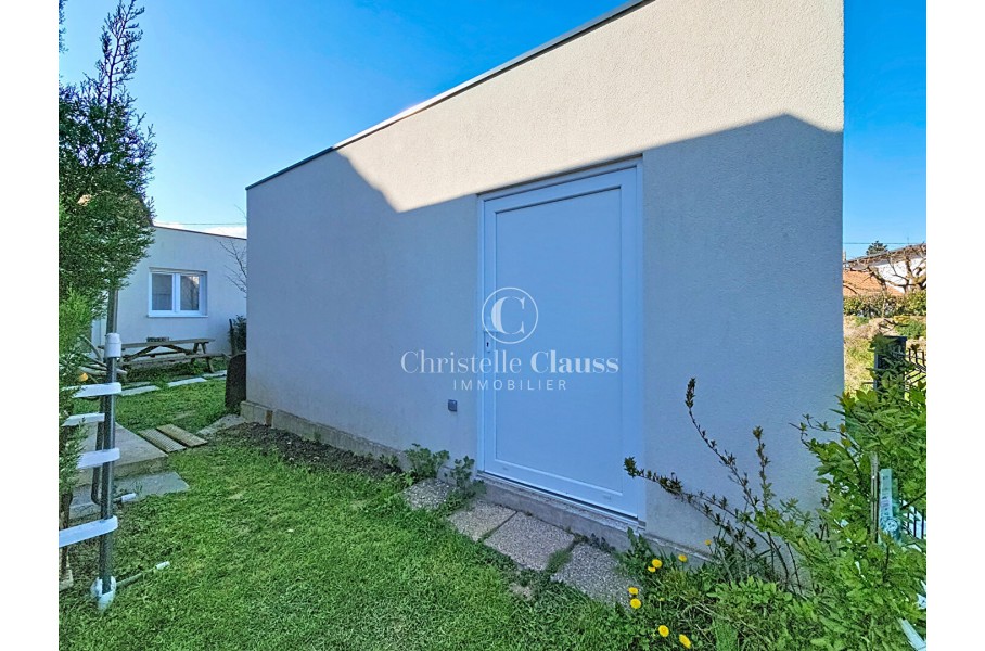 A l'extérieur, un beau jardin arboré et ensoleillé, une place de parking ainsi qu'une dépendance d'une surface de 20m2 avec eau et électricité pouvant servir de bureau ou annexe.