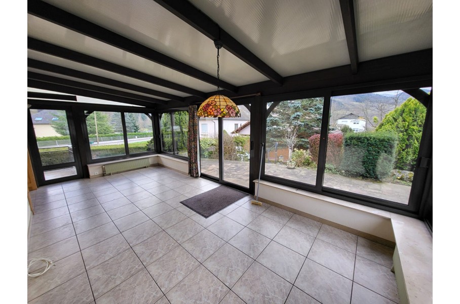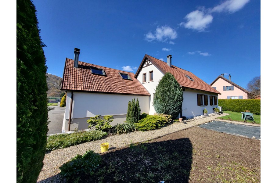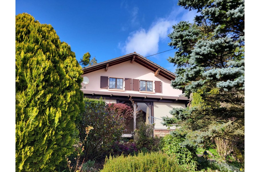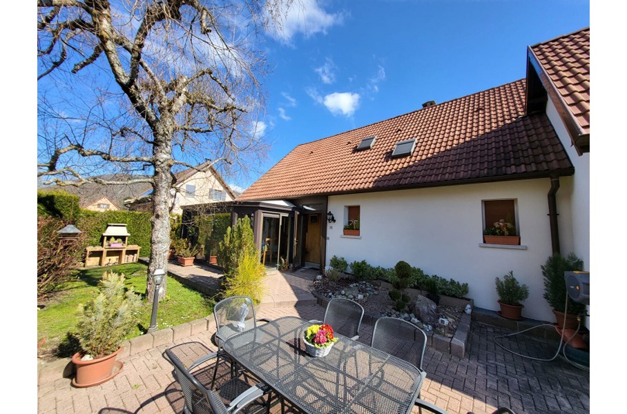Très belle propriété située au calme sur la commune de Ranspach, sur une surface de 141 m². Elle dispose d'une lumineuse véranda ouvrant sur un spacieux salon-séjour, avec quatre chambres ainsi que d'une cinquième chambre aménagée au sous-sol avec douche et WC.