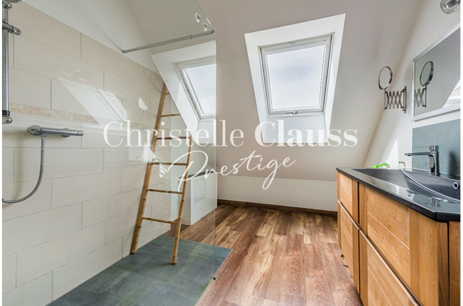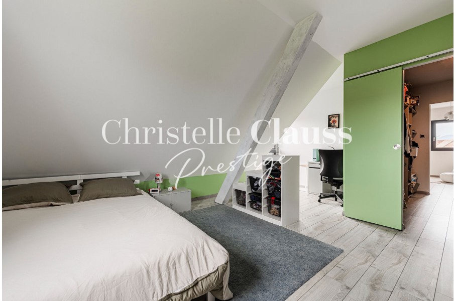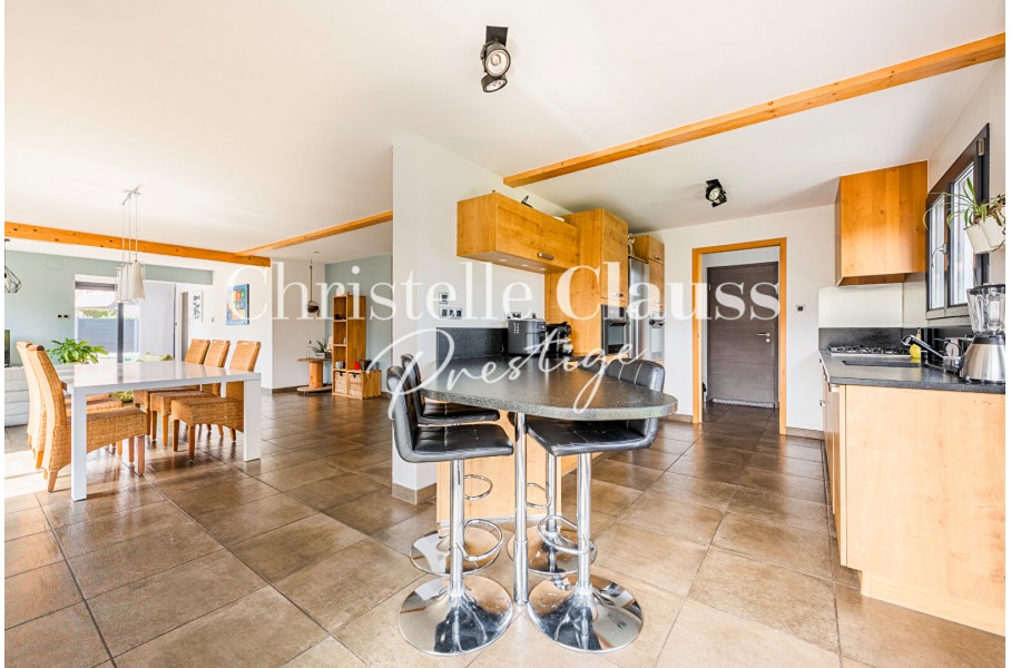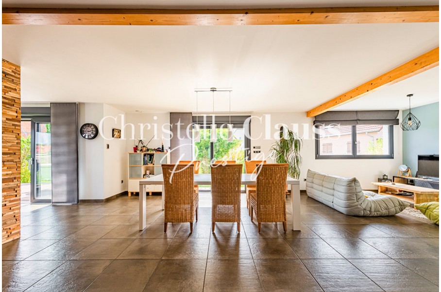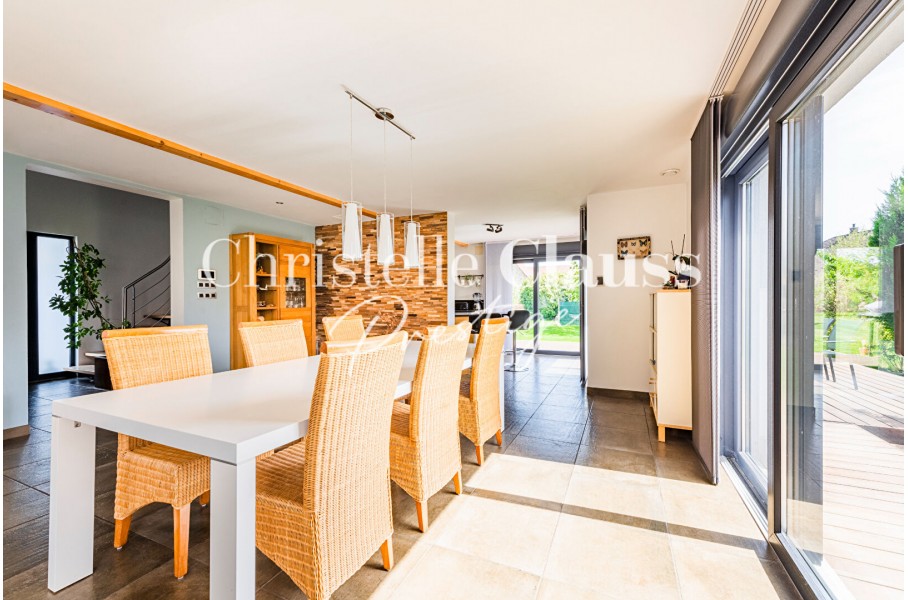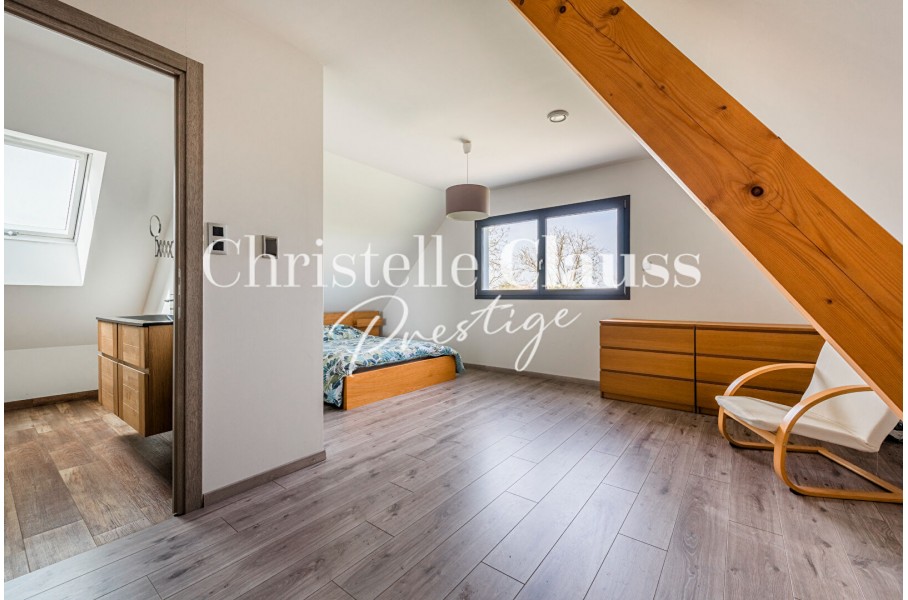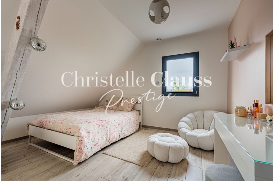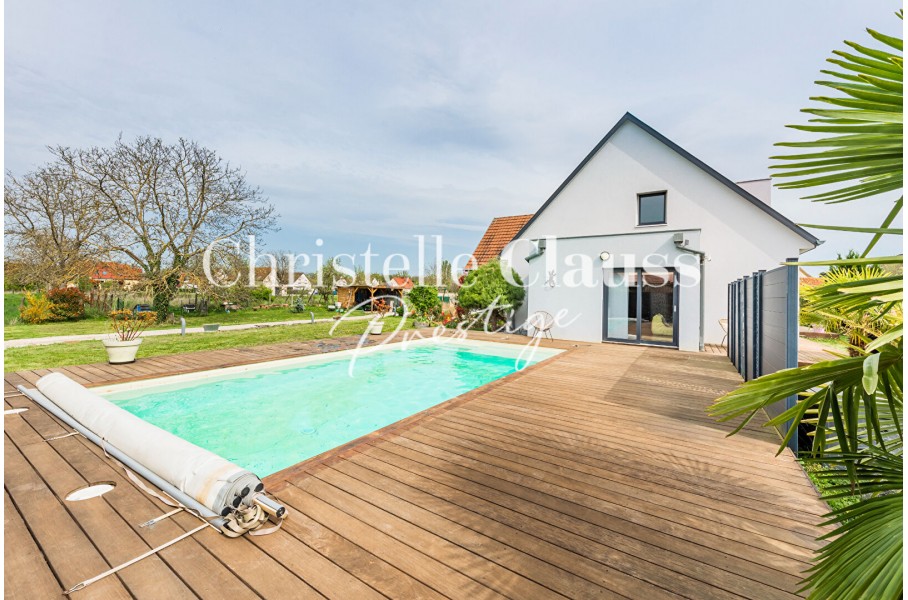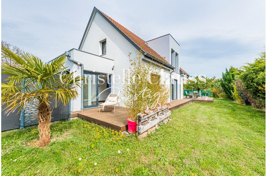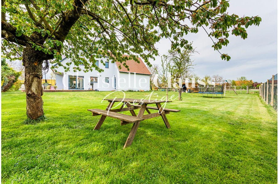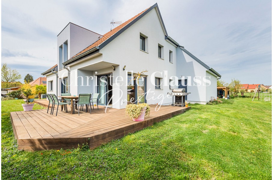 Véritable havre de paix au coeur du village de Niederhergheim offrant espace, confort et bien être, cette maison de 2017 sur 20 ares bordés de prés vous séduira à coup sûr!