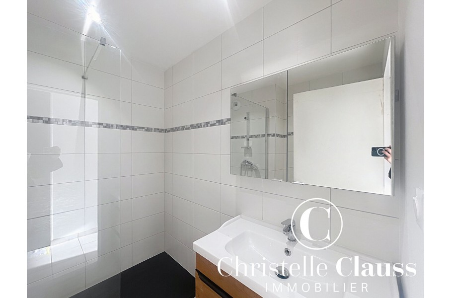 Il se compose d'une entrée avec rangement, une chambre, une cuisine équipée dont un four pyrolyse et lave-vaisselle, d'une sortie balcon. La salle d'eau comprend le WC et une douche à l'italienne. Le séjour possède le 2ème balcon avec une vue belle vue calme sur le parc.
