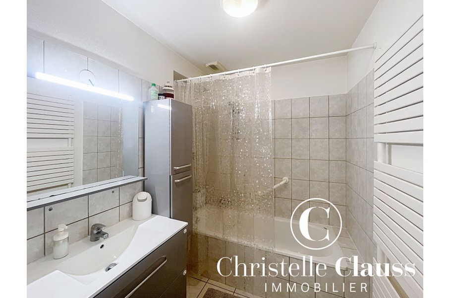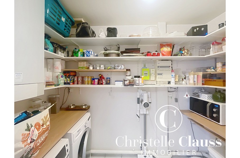 Comprenant : une entrée avec rangement , une cuisine équipée ouverte sur le séjour ( four/plaque/hotte), deux chambres, une salle de bains, un Wc, un cellier.