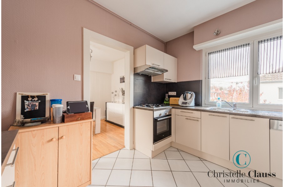 OBERNAI , situé au 1er et dernier étage d'une maison bi-famille, appartement 3/4 pièces de 81 m² en bon état comprenant : une entrée avec un placard, un spacieux salon/séjour, une cuisine indépendante aménagée et équipée (hotte, plaque de cuisson, four et lave vaisselle), deux chambres dont une avec un accès au balcon, une salle de bain (baignoire) et un WC séparé.