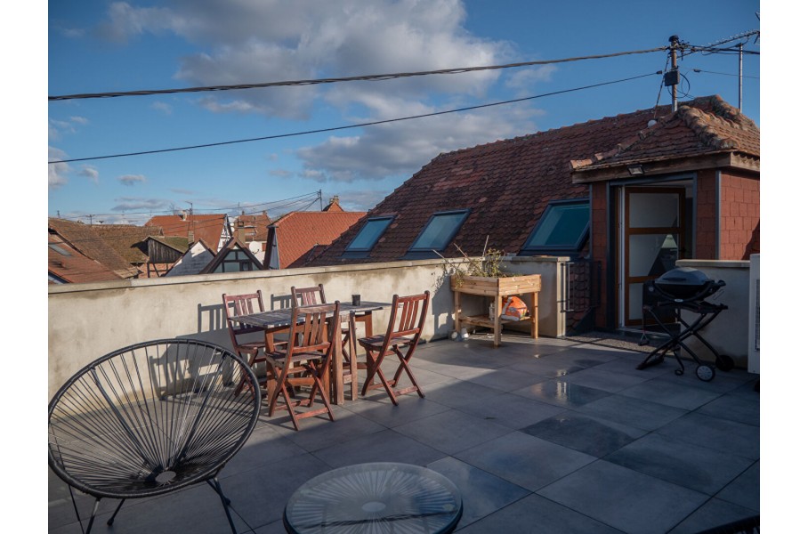 EBERSMUNSTER, proche SELESTAT, dans une petite ruelle calme, vue sur l'ILL, bel appartement rénové en duplex au 1er étage d'une petite copropriété de 4 appartements.