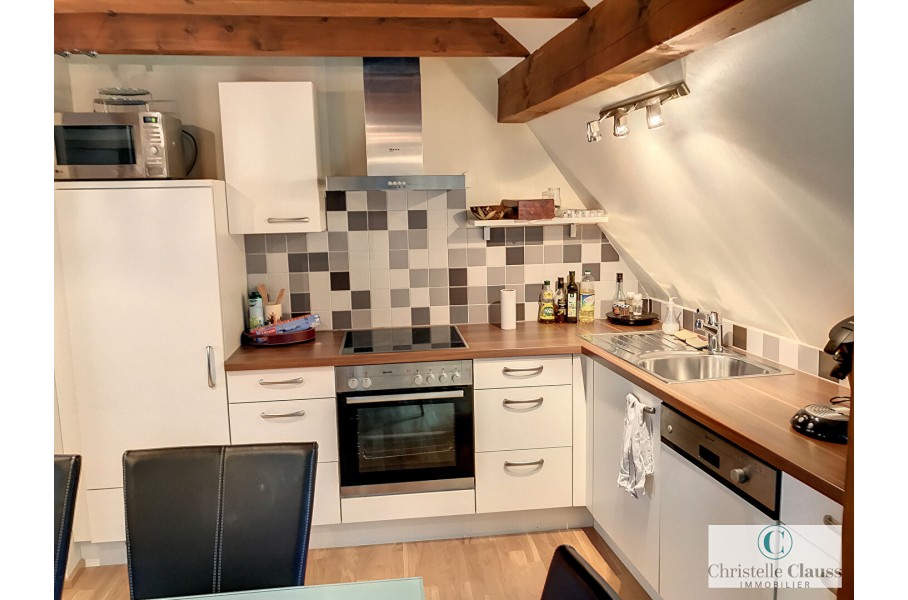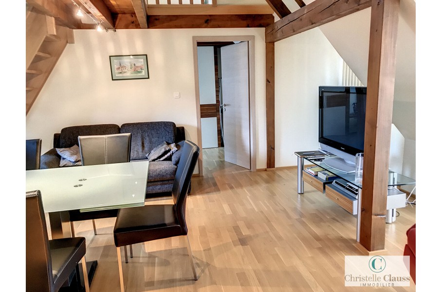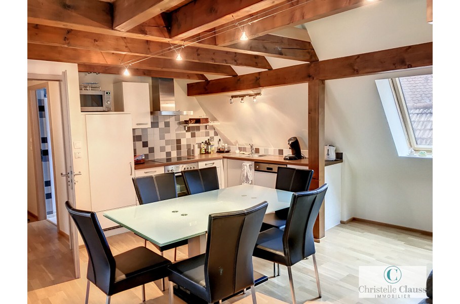 OBERNAI : situé à l'entrée du centre ville, venez visiter cet appartement 3/4 pièces mansardé en duplex, entièrement meublé de 53.35 m² habitable, aux belles prestations et au 2ème étage sans ascenseur.