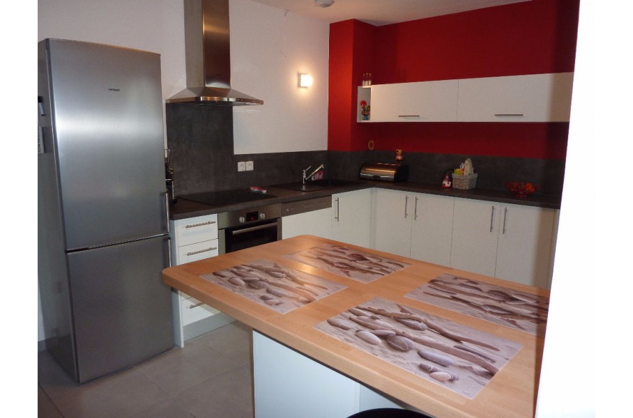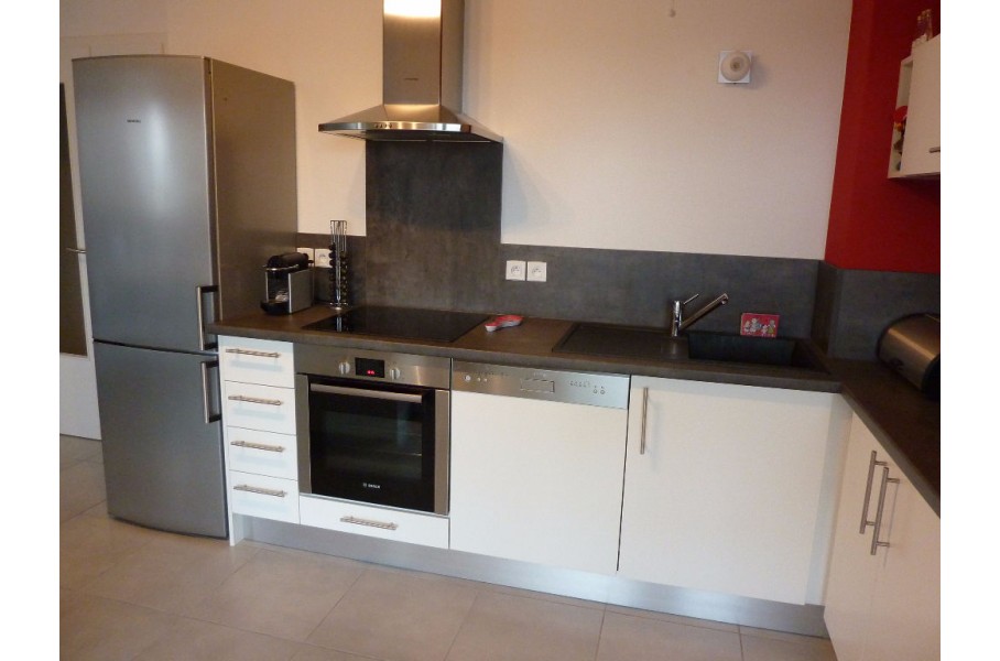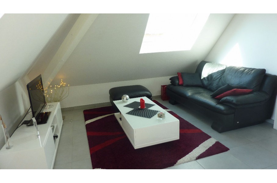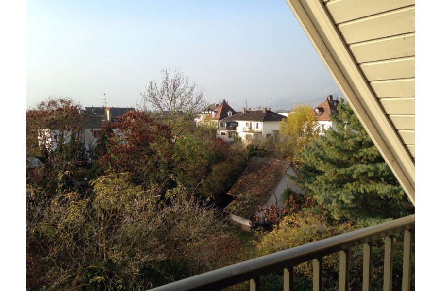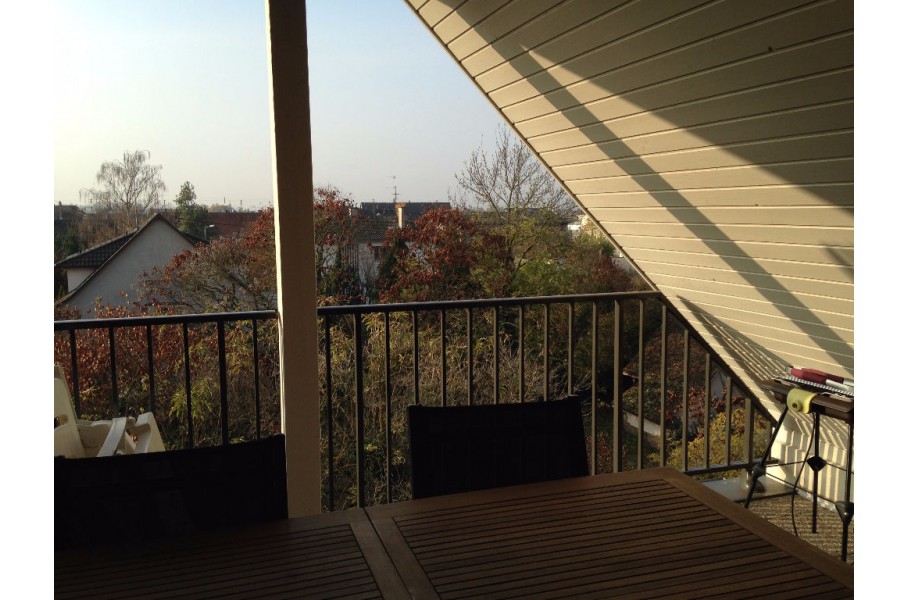 SELESTAT, très bel appartement de 3 pièces au dernier étage, d'une surface au sol de 84m² comprenant une entrée, une cuisine équipée ouverte sur un grand séjour avec un accès sur la terrasse couverte, 2 chambres, une salle de bains et wc séparés.
