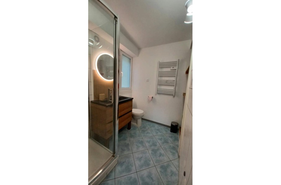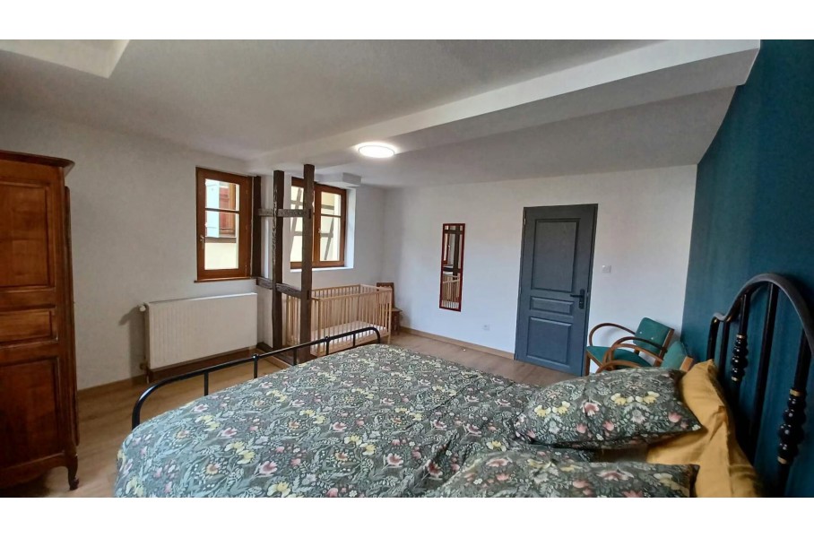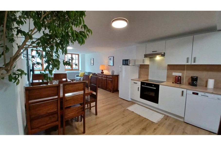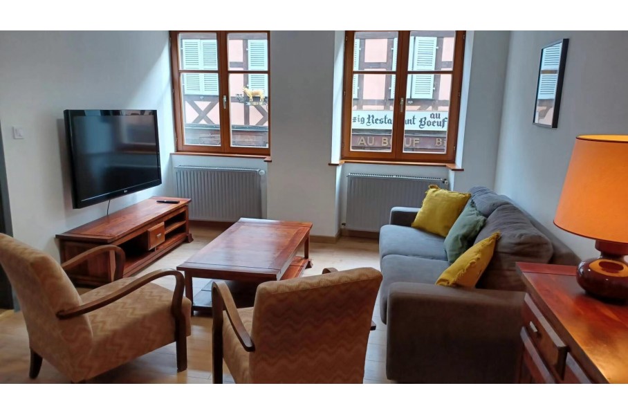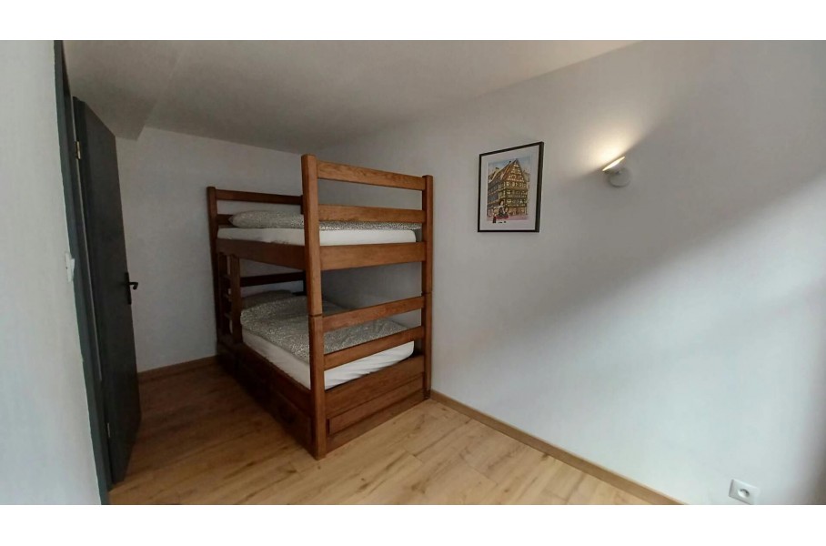 BARR, en plein centre ville, bel appartement 2-3 pièces totalement meublé au 1er étage d'un petit immeuble comprenant une entrée, une cuisine ouverte sur séjour, une salle d'eau, une pièce faisant office de chambre et une seconde pièce avec lit superposés .