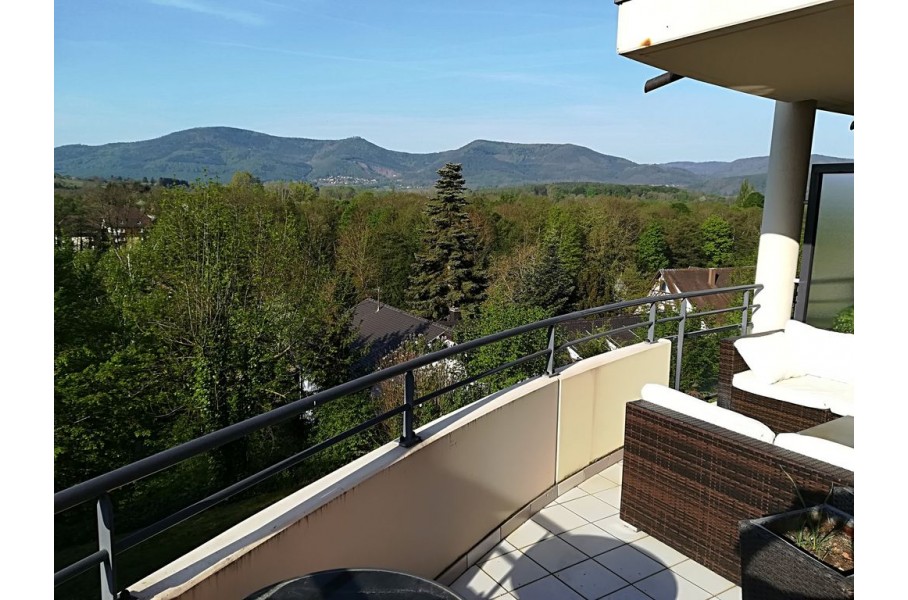 OBERNAI : situé dans une copropriété résidentielle et au calme, route de Boersch, venez visiter ce magnifique 3 pièces Meublé de 73 m², lumineux, au 1er étage avec ascenseur. Il se compose d' une entrée avec un placard, une cuisine indépendante aménagée et équipée semi ouverte sur le séjour (mobilier, hotte, plaque, four, lave-vaisselle, micro-ondes et réfrigérateur), un salon séjour avec accès à une grande terrasse de 19 m² offrant une vue imprenable sur la colline du Mont Sainte-Odile, deux chambres avec placards, une salle de bain et un wc séparé.
