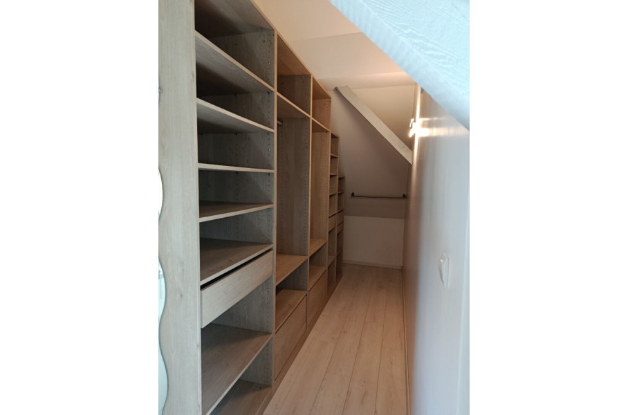 Le logement se compose d'une entrée, une belle cuisine ouverte sur séjour, une chambre avec coin bureau et dressing, une seconde chambre avec accès sur mezzanine, une salle d'eau avec wc.