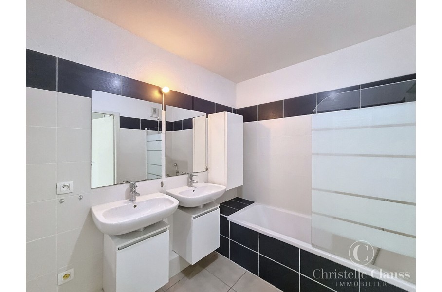 OBERNAI : Situé au parc des Roselières, spacieux 4 pièces de 85.27 m², situé au 1er étage d' une résidence avec ascenseur. Il se compose d' une entrée avec deux placards, un séjour avec accès à une terrasse, une cuisine indépendante aménagée et équipée (mobilier, four, plaque, hotte), un cellier, trois chambres dont une avec un accès au balcon, une salle de bain et un wc.
