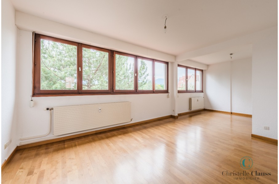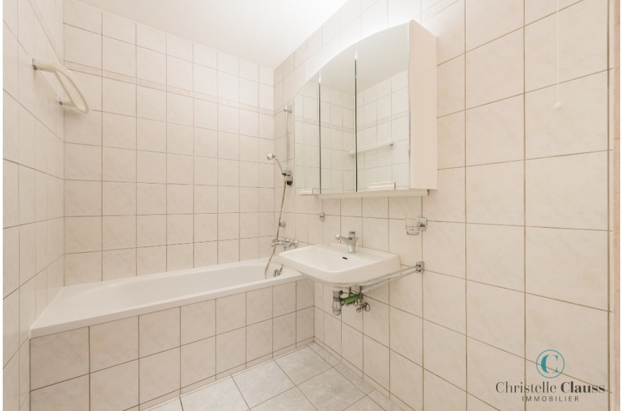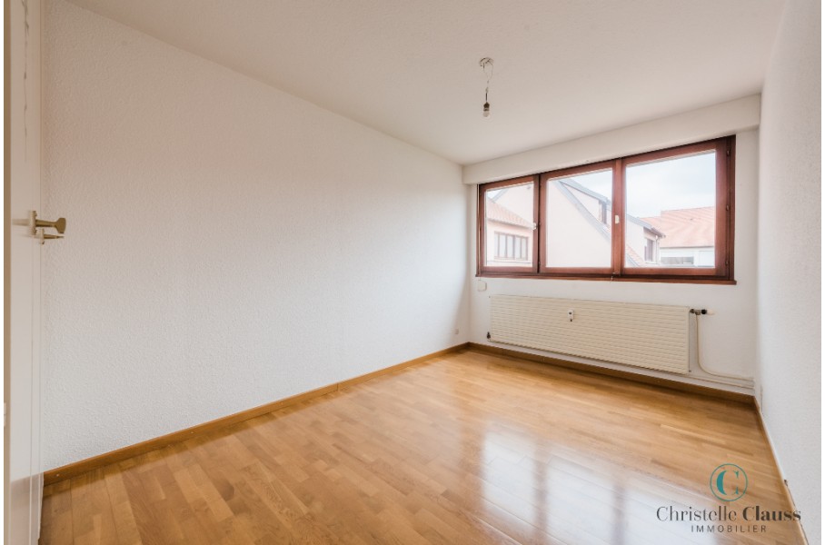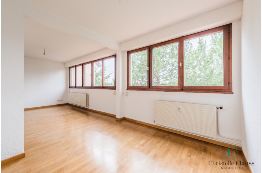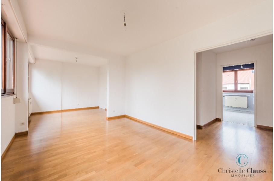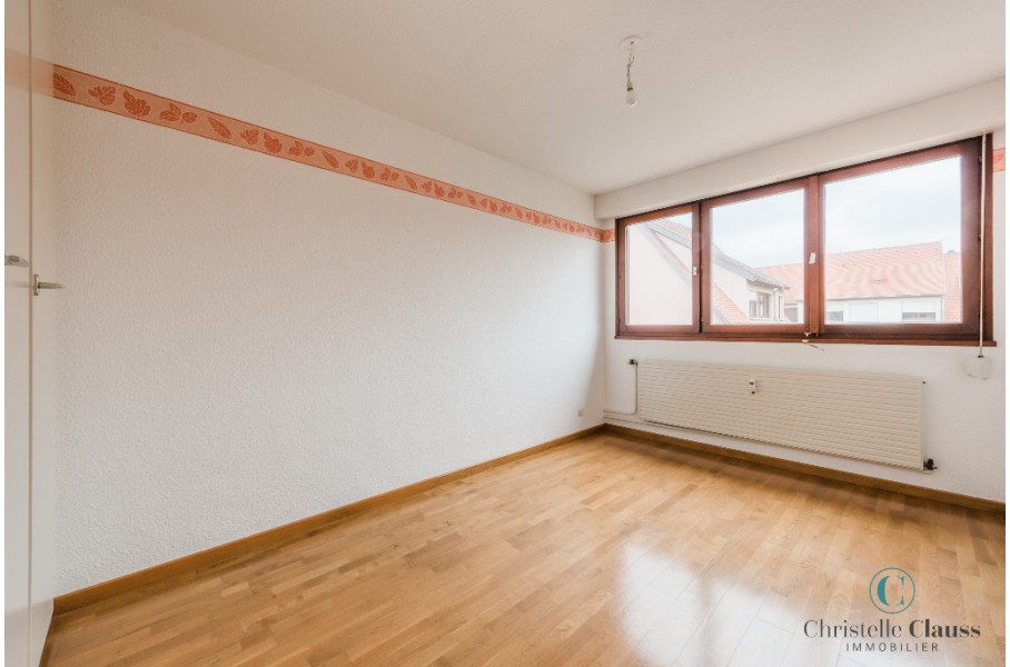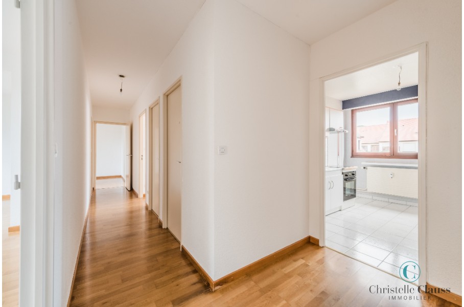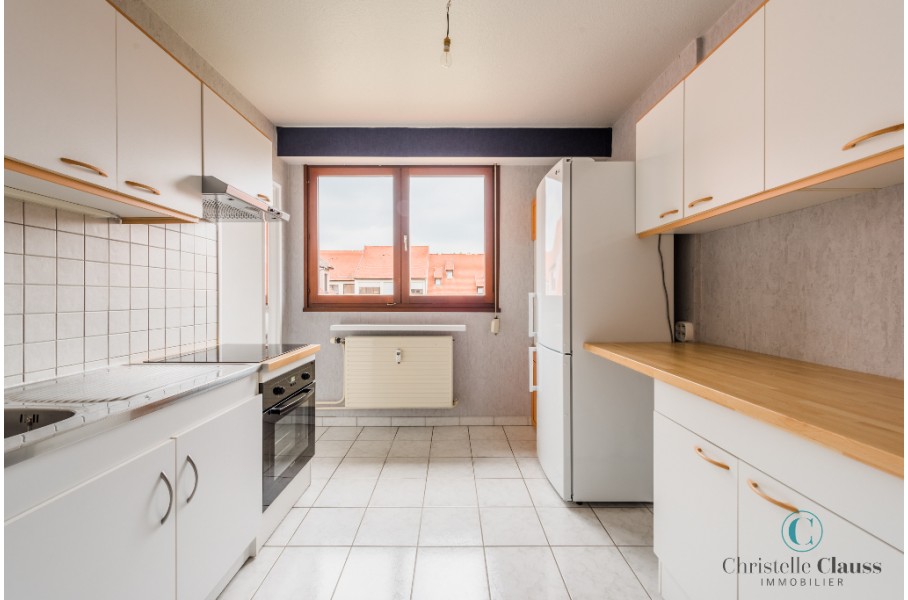 Appartement de type 3/4 d'environ 85m² composé d'une entrée avec placard, une cuisine meublée et équipée (four, plaques, hotte, frigo), un cellier, un grand séjour lumineux, deux chambres avec placards, une salle de bains.