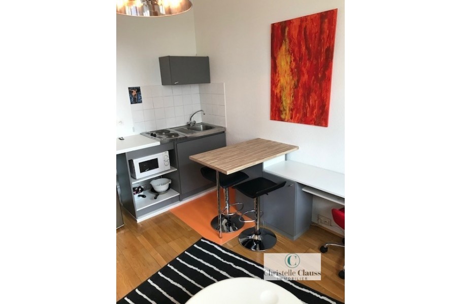 A louer : A proximité immédiate du campus universitaire de l'esplanade et de l'arrêt de tramway Esplanade découvrez cet appartement meublé de 1 pièce au calme de 18 m² . Il compte une entrée avec dégagement et placard, une chambre et une kitchenette , une salle d'eau avec WC.