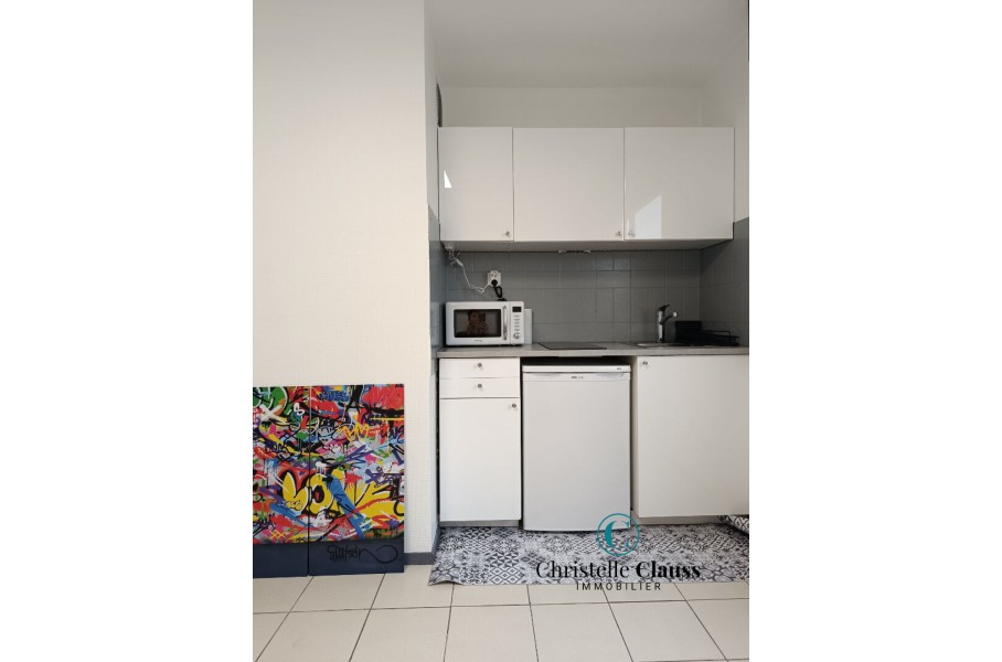 Venez découvrir cet appartement meublé entièrement rénové de 22.53 m² et se composant comme suit: une entrée avec dégagement et placard, une pièce principale, une kitchenette ouverte et équipée (plaques de cuisson, réfrigérateur), une salle de bain avec WC.